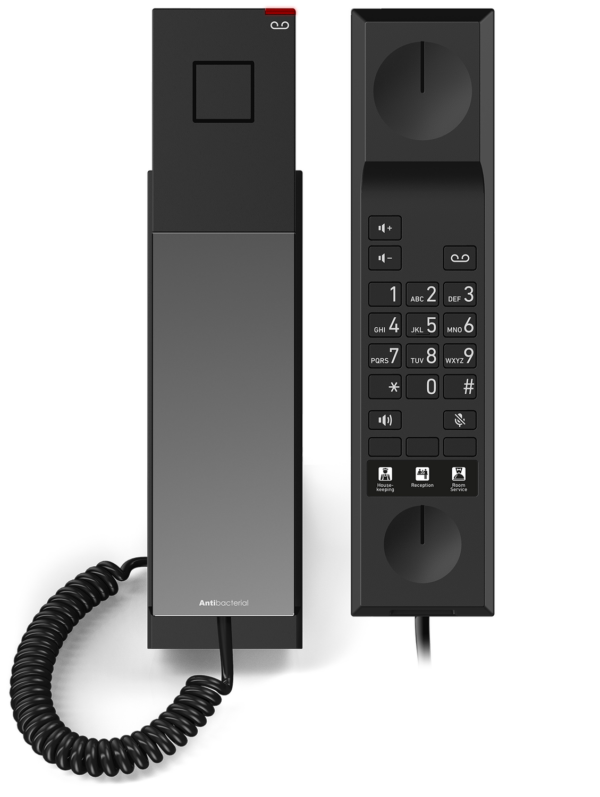 Lo Snom HD300 è un elegante telefono IP con cavo, progettato per il settore alberghiero e ricettivo, che offre funzionalità igieniche, personalizzabili e intuitive. Il suo involucro antibatterico garantisce la sicurezza degli ospiti, mentre l’indicatore LED ben visibile avvisa gli utenti delle chiamate in arrivo o dei messaggi in attesa. Il pannello frontale personalizzabile consente di personalizzare il proprio brand o di impartire istruzioni agli ospiti, rendendolo un’opzione versatile per qualsiasi struttura alberghiera.